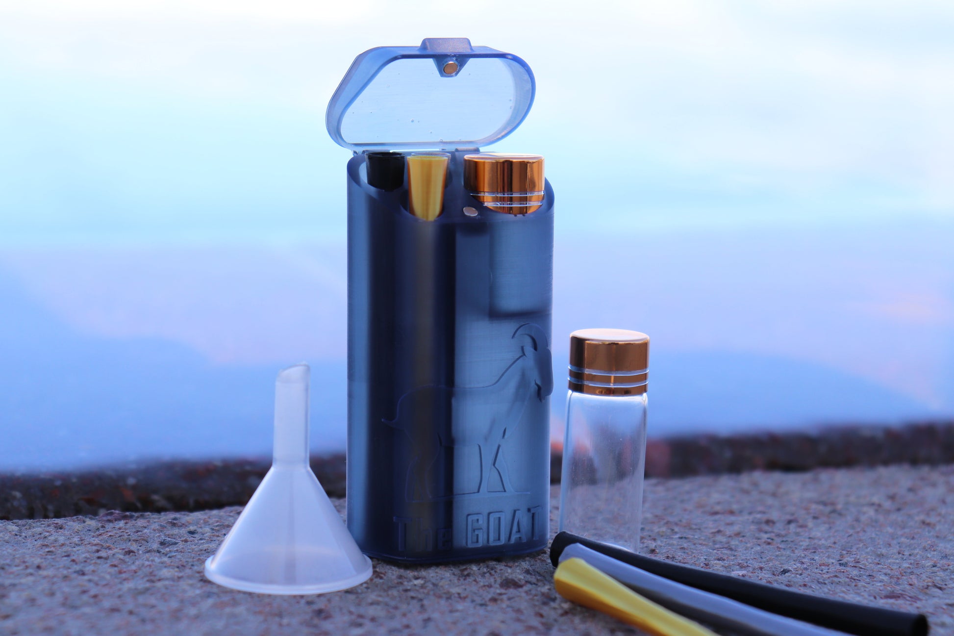 Your GOAT Pro features a magnetic lid to safely secure all contents and two rear mounted half-pipes when when you're in a pinch!